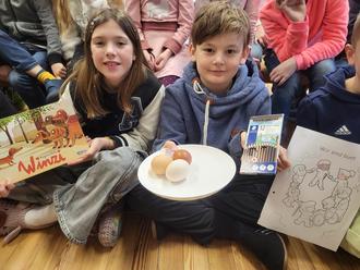 In der Literaturstunde sprachen wir über Verschiedenheiten. Ausgehend von einem Buch, in dem Verschiedenheiten Thema war, spannten die Kinder schnell den Bogen zu unser aller Verschiedenheiten. Diese sind vor allem äußerlich sichtbar. Um zu verdeutlichen, dass wir aber im Kern alle gleich sind – nämlich Menschen, zogen wir als Beispiel Eier heran. Klingt komisch, ist aber so! 3 Eier sahen wir uns an: Ein braunes, ein hellbraunes und ein beiges Ei. Alle drei hatten eine schöne Form und glänzten. Aber die Farben waren eben sehr unterschiedlich. Auf die Frage hin welches schöner sei oder aber welches man so gar nicht essen würde, weil es hässlich aussieht wurde heiß diskutiert. Der Einwurf, dass es ja wohl egal sei, weil alle gleich schmecken führte zum nächsten Beitrag, dass innen ja eh alle gleich aussehen. Und das überprüften wir. Und siehe da: Ohne Schale sahen alle exakt gleich aus, nämlich weiß mit einem gelben Dotter! Eine Erkenntnis jagte die nächste: Wir alle sehen unter unseren Haaren, Augen und der Haut auch gleich aus. Die Vorstellung ist zwar etwas eklig, aber es stimmt. Festhalten konnten wir am Ende der Stunde, dass es einfach nur dumm ist Menschen (oder Eier) alleine aufgrund ihres Aussehens nicht zu mögen. Rassismus ist dumm! Und so malten wir die Kinder auf dem Arbeitsblatt „Wir sind bunt“ in den verschiedensten „Hautfarben“ an und freuten uns darüber, dass die Menschen der RvGS auch bunt sind.