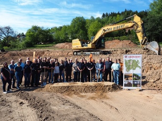 Auch Mitglieder der städtischen Gremien und der Feuerwehr Airlenbach sowie interessierte Bürgerinnen und Bürger verfolgten mit Freude den Spatenstich: