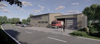 Mit Abbruch des ehemaligen Bauhofs in Schöllenbach ist die Baufläche vorbereitet für den Neubau des Feuerwehrhauses. Wie das Gebäude mit einer Nutzfläche von 574 qm nach Fertigstellung aussehen wird, zeigt diese visualisierte Abbildung: