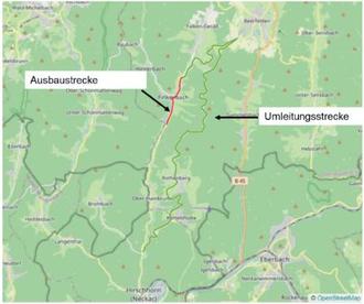 Der Durchgangsverkehr wird auch in Bauabschnitt zwei, wie gehabt, ab Finkenbach zunächst über die L 3119 Richtung Oberzent, und dann Richtung Süden über die L 3410 durch Rothenberg und Kortelshütte umgeleitet (siehe Abbildung).