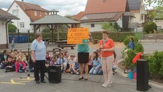 Alle diese interessanten Projekte wurden am Freitag auf dem Schulfest vorgestellt. Zu Beginn stimmte der Chor die Besucher ein und Rektorin Elke Dahmen konnte zahlreiche Besucher begrüßen. Die stolze Summe von 1000 € konnte sie an den Verein der Generationenhilfe übergeben. Diesen Betrag hatten die Kinder mit ihren Klassenlehrern am Weihnachtsbasar erwirtschaftet und wollten dies einem gemeinnützigen Verein zu gute kommen lassen. Zumal der Generationenverein die Grundschule in der Stried sehr tatkräftig unterstützt.
