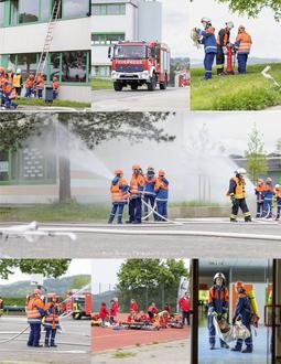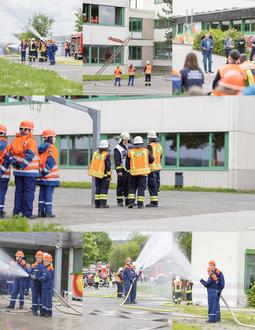 Rund um den sogenannten C-Bau und den N-Bau wurde mit insgesamt 25 Strahlrohren eine Wasserwand erzeugt und dem Brand zu Leibe gerückt. Es dauerte daher nicht lange, bis auch dieses Übungsziel erreicht war.