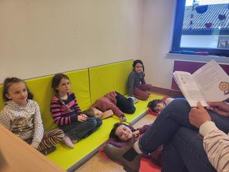Um am zweiten Tag nach den Ferien direkt den Welttag des Buches begehen zu können, wählten sich die SchülerInnen der RvGS bereits vor den Ferien bei ihren Wunschbüchern ein. Vorgelesen wurde in diesem Jahr aus "Ronja Räubertochter", "Die Kinder aus der Krachmacherstraße", "Das Klugscheisserchen", "Ein Lama im Glück" und "Momo". Am Mittwoch, den 23. April verteilten sich die Kinder dann in Gruppen im gesamten Schulgebäude und lauschten den Geschichten. Manche machten es sich bequem, andere malten dabei, wieder andere betrachteten die Bilder welche dazu gezeigt wurden ganz genau. Aber alle hörten aufmerksam zu. Unsere Schüler lieben es sehr, wenn sie vorgelesen bekommen und so konnten sie sich auch diesmal für die Geschichten begeistern. Wir lieben Bücher und so freuen wir uns schon jetzt auf den nächsten Welttag des Buches!
