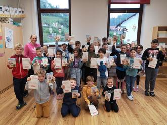Zum Welttag des Buches bekam die Kinder der RvGS wieder ein Buch. Die Stiftung Lesen verschenkte auch in diesem Jahr über die örtlichen Buchhandlungen einen Comicroman. In diesem Jahr hat es den Titel Titel "Volle Fahrt ins Abendteuer". Da die Kinder der RvGS nicht einfach mal so nach Beerfelden zum Papillon laufen können, hat sich Frau Lenz auch in diesem Jahr etwas Tolles einfallen lassen. Es erreichte uns eine Box mit Büchern und einer Ralley. Frau Schröder überreichte allen Kindern eine kleine Tüte. Darin fanden wir nicht nur das Buch, sondern auch ein Lesezeichen, einen Stift und eine kleine Schokolade. Die Freude war natürlich riesig. Klasse 3/4 nahm sich dann noch der dazugehörigen Ralley an. Voller Eifer wurde gerätselt und gesucht und eingetragen und geschrieben. Immerhin gibt es etwas zu gewinnen. Eine Schülerin brachte dann die Teilnahmebögen, gemeinsam mit einer bunten Dankekarte ins Papillon. Auf diesem Weg möchten wir Frau Lenz und dem Papillonteam herzlich danken. Wir haben uns alle sehr gefreut.