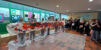 Schüler der Klasse 10 b zeigten als Opener mit einer Kunst-Performance den Mut, sich als „Rolling Artists“ zu „We don't need no education“ aus Pink Floyds „The Wall“ durch auf eine Papierrolle aufgeschleuderte Farbe in Maleranzügen zu wälzen. Um dann ein dadurch entstandenes Kunstwerk sowohl auf ihren Overalls als auch auf ihrem Farbteppich zu präsentieren.