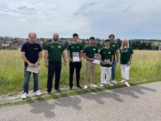 Die Firma Eco-Suciu, beim Fototermin vertreten durch Herrn Orhan Güler, spendet den Abgängern der Oberzent-Schule T-Shirts und die Firma PR-Concept, Inhaber Joachim Seip, bedruckt die T-Shirts kostenfrei mit unserem Logo.