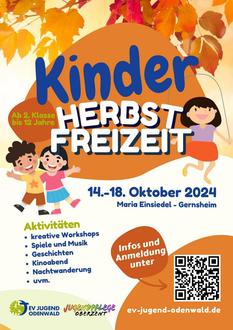 Vom 14. bis 18. Oktober 2024 findet die diesjährige Kinder-Herbstfreizeit in Gernsheim (Maria Einsiedel) statt, und es sind noch Plätze frei!