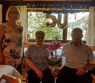 Am 21. Juni feierten die Eheleute Rosel und Edgar Scheuermann in Hebstahl das Fest der Goldenen Hochzeit. Unter den zahlreichen Gratulanten aus Familie, Nachbarschaft und Freunden war auch die Erste Stadträtin Jutta Haas, die dem Jubelpaar die Glückwünsche im Namen der Stadt Oberzent und die Glückwunschurkunde des Hessischen Ministerpräsidenten überbrachte.