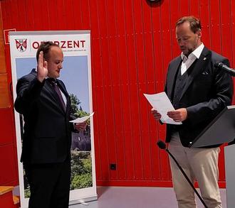Stadtverordnetenvorsteher Dirk Daniel Zucht nahm die Vereidigung und Verpflichtung des Bürgermeisters für die weitere Amtszeit von 6 Jahren vor, die mit dem 01. Juli 2024 begonnen hat.