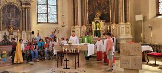Am 22.06.25 feierten wir in der Pfarrkirche Hirschhorn einen Familiengottesdienst zum Thema Kreuz, der musikalisch von der Jugendband begleitet wurde. Am Altar waren viele verschiedene Kreuze aufgebaut. "wenn einer hinter mir hergehen will, verleugne er sich selbst, nehme täglich sein Kreuz auf sich und folge mir nach.“ So sprach Pater Sijoy im Evangelium. Doch was bedeutet es ein Kreuz zu tragen in unserem täglichen Leben? Hierzu trugen Kinder und Jugendliche vor, was das bedeuten kann, sei es der Tod eines lieben Familienmitgliedes, oder Schwierigkeiten in der Schule, die bewältigt werden müssen.