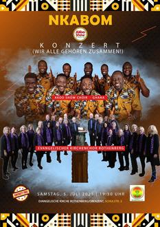 Wir möchten Sie zu einer ganz besonderen Veranstaltung einladen. Der Ev. Kirchenchor wird gemeinsam mit den afrikanischen Sängern von NKABOM AKOO SHOW CHOIR unter dem Motto: „Wir alle gehören zusammen!“ die Kirche an diesem Abend mit tollen Klängen und Rhythmen füllen. Diese Musik ist besonders mitreißend. Lassen Sie sich das stimmungsvolle Ereignis nicht entgehen!