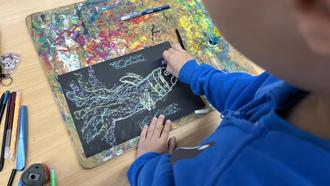 Das Buch erzählt mit wunderschönen Illustrationen von Fischen, die eine Vielzahl von Gefühlen ausdrücken. Die Kinder tauchten voller Begeisterung in die bunte Unterwasserwelt ein und wurden selbst zu Künstlerinnen und Künstlern. Es war faszinierend zu sehen, wie sie sich in die verschiedenen Gefühlslagen der Fische hineinversetzten und diese mit Farben zum Ausdruck brachten. Gemeinsam erkundeten sie verschiedene Maltechniken und setzten diese mit Zuckerkreide um, um ihre eigenen Versionen der Fische zu erschaffen.
