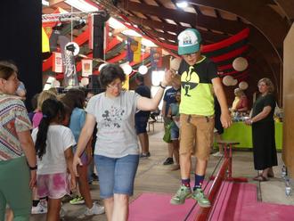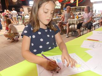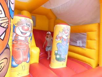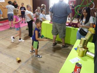 Bei „Erbsenklatsche“ wurde mittels einer Fliegenklatsche Holzperlen gejagt. Und auf dem Drahtseil durfte man balancieren. Allen Kindern, die sich weiterhin bewegen wollten, stand die Hüpfburg der Sparkasse Odenwaldkreis zum Toben zur Verfügung. Wer sich künstlerisch austoben wollte, konnte dies am Maltisch tun.