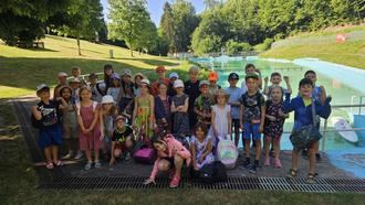 Im Sommerlook, mit Kleidern, bunten Hosen, Rücksäcken, Matten, Kappen und farbenfrohen Hüten fuhren die Schülerinnen und Schüler bei bestem Wetter gut gelaunt nach Beerfelden und liefen gemeinsam ins Schwimmbad. Dort verbrachten sie eine ganz tollen Tag im und am Wasser.
