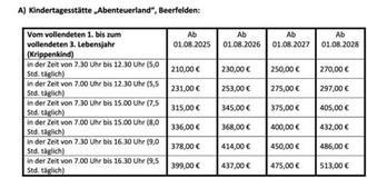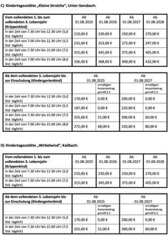 (1) Der monatliche Kostenbeitrag für die Betreuung eines Kindes in einer Tageseinrichtung für Kinder der Stadt Oberzent beträgt für ein Kind einer Familie oder einer alleinerziehenden Person in der/ im