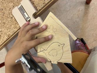 Das letzte große Projekt des Halbjahres waren kleine Schlüsselhäuser. Diese konnten mit einem Schlüsselanhänger in Form von Herz, Vogel oder Eule gewählt werden. Alle begannen mit großem Eifer das Häuschen auszusägen!