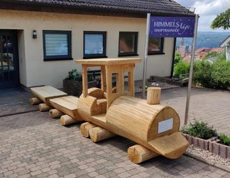 Wieder einmal ist es soweit und 19 Vorschulkinder verlassen den Kindergarten. Zum Abschied haben sie sich etwas ganz Besonderes überlegt, eine Eisenbahn für den Eingangsbereich mit Sitzmöglichkeit. Ein Entwurf, Material und ganz viele Papas müssen ran. Ein großer Eichenstamm wurde liebevoll in eine Eisenbahn verwandelt. Es wurde mühevoll gesägt, geschliffen und gehobelt. Viele helfende Hände, viele schöne Stunden und ein wunderschönes Ergebnis. Hier ein riesengroßes Dankeschön an Andreas Ihrig (Sägewerk Ihrig), ohne Ihn wäre es uns nicht möglich gewesen das Projekt umzusetzen.