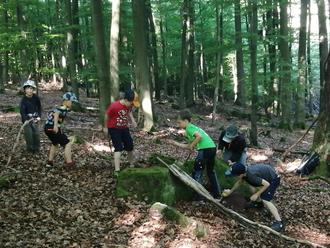 Kurz vor den Sommerferien stand für die Grundschüler aus Rothenberg ein besonderes Highlight auf dem Programm. Der alle zwei Jahre stattfindende Umwelttag führte die Kinder in diesem Jahr nach einer Wanderung in den nahe gelegenen Wald. Dort erwarteten die Kinder vorbereitete Stationen in Anlehnung an das naturpädagogische Konzept von Joseph Cornell. Hierbei stehen insbesondere spielerische Naturerfahrungen und das naturnahe Erleben im Mittelpunkt. Nach dem gemeinsamen Picknick unter großen Bäumen begann der Tag mit einer Traumreise, bei der sich die Kinder entspannten und mit allen Sinnen auf den Wald einstimmten. An verschiedenen Stationen erlebten die Schüler den Wald anschließend auf vielfältige Art und Weise. Viel Freude hatten die Schüler beim Bauen von Wichtelhäusern und einer gemeinschaftlichen Kugelbahn aus Ästen und Rinde. Der Kreativität waren dabei keine Grenzen gesetzt und der Spaß kam natürlich auch nicht zu kurz. Wer es lieber etwas ruhiger wollte, konnte sich auf Forscherreise begeben und Tierspuren den passenden Bildern zuordnen oder Mandalas aus Naturmaterialien legen. Eine weitere Herausforderung aber sehr viel Spaß stellte das eigene Gestalten von Schmuckstücken aus Naturmaterialien dar. Viel Freude hatten die Schüler außerdem beim Spielen von Naturbingo oder beim Suchen von besonderen Schätzen des Waldes. Wie einfach abwechslungsreiche Spiele wie Memory oder Tic Tac Toe aus Naturmaterialien gemacht werden können, begeisterte viele Kinder. Großen Zuspruch erfuhr die Station, an welcher die Schüler aus Holunderstöcken eigene Pfeifen schnitzen und aushöhlen konnten. Viele Kinder merkten, dass es einige Übung erfordert, die Pfeife anschließend zum Klingen zu bringen, wobei nach kurzer Zeit das fröhliche Pfeifen im ganzen Wald zu hören war und die Kinder sich entsprechend glücklich und stolz auf den Nachhauseweg begaben. Ein abwechslungsreicher Tag ging zu Ende, an dem allen mal wieder bewusst wurde, dass weniger oft mehr ist und der Wald einen häufig unterschätzten Spiel- und Lernort für Groß und Klein darstellt.