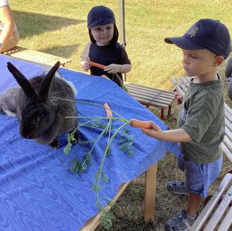 Am Freitag, dem 4. Juli gab es vierbeinigen Besuch in der Ev. Kindertagesstätte in Beerfelden. Der Mobile Streichelzoo aus Falken-Gesäß kam bereits am Vormittag auf unser Gelände und brachte viele Tiere mit. Es gab Hasen, Ziegen, Meerschweinchen, einen Hund, ein Hängebauchschwein Hühner und Mäuse. Die Kinder konnten die Tiere beobachten, füttern und streicheln. Zunächst hatten die Krippenkinder Zeit sich an dem Besuch zu erfreuen, später durften dann auch die anderen Kinder in kleinen Gruppen bei den Tieren sein. So hatte jedes Kind die Möglichkeit mit allen Tieren in Kontakt zu kommen. Für die Kinder war dies ein schönes Erlebnis.