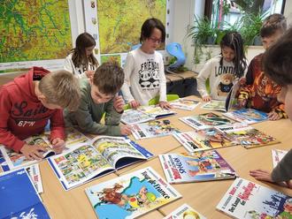 Löwenstark sei Dank! Das Corona-Aufholprogramm endet diesen Sommer. Leider. Dank Löwenstark konnte die RvGS viele schöne Dinge anschaffen, um Kindern das Lernen leichter und schöner zu gestalten, um sich auszuprobieren und zu experimentieren. Auch unsere Bücherei wurde dank diesem Programm in den letzten Jahren immer weiter bestückt. Dieses Mal wünschten sich die Kinder Comics. Insgesamt 1000€ haben wir ausgegeben und zahlreiche Asterix&Obelix-Comics, aber auch die komplette Tim&Struppi-Reihe angeschafft. Nicht nur die Kinder freuten sich riesig. Auch das Team ist ganz begeistert. Wir hoffen, dass die Bücher vielen Kindern Freude bereiten und fleißig darin gelesen wird. Vielleicht mag der ein oder andere Elternteil mal mit reinschauen und entdeckt die Liebe zu Comics neu?!