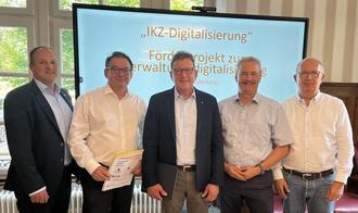 Für eine nachhaltige digitale Transformation der Verwaltungen ist ein organisationsübergreifender Wandel erforderlich. Bereits 2022 haben die Kommunen Erbach, Michelstadt, Oberzent und Brombachtal beschlossen, die Digitalisierung ihrer Verwaltungen innerhalb einer interkommunalen Zusammenarbeit (IKZ) voranzutreiben. Ein zentraler Baustein dieses gemeinsamen Vorhabens ist die Einführung eines Dokumentenmanagementsystems (DMS), das als elektronische, abteilungsübergreifende Verwaltungsakte (E-Akte) in allen vier Kommunen bis Ende 2024 eingeführt sein wird. Zudem wurde eine gemeinsame Digitalstrategie erarbeitet und in den Gremien der Partnerkommunen verabschiedet. Das Projekt wird seit Sommer 2022 durch das Programm „Starke Heimat Hessen“ zur Förderung smarter Kommunen und Regionen mit 364.000 Euro vom Hessischen Ministerium für Digitalisierung und Innovation gefördert. Staatssekretär Sauer informiert sich über die bisherige Umsetzung.