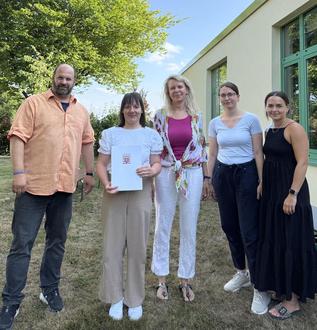 Schulleiter Bernd Siefert überreicht an Frau Teresa Becker die Urkunde zur Verbeamtung auf Lebenszeit und spricht herzliche Glückwünsche aus. Der Personalrat, Alexandra Kern, Christine Moser und Andrea Maneth wünscht alles Gute und freut sich auf die kollegiale Zusammenarbeit.