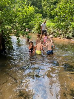 Dienstags wies uns Marvin Schneider den Weg in das wunderschöne Rautal in Gammelsbach. Schon der Weg nach Gammelsbach war ein Höhepunkt für sich, was nur vom Baden in der Gammelsbach getoppt werden konnte. Die Kinder bewiesen einen eiskalten Willen, als sich alle in den Bach stürzten und dort eine ganze Zeit lang verweilten.