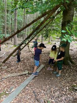 Am Mittwoch besuchten wir das Pflanzhäuschen in der Nähe des Segelflugplatzes. Dort bauten die Kinder fleißig ein Lager, das von einem selbstgebauten Dach geschützt wurde. Eine angelegte Feuerstelle mit Sitzmöglichkeiten bot eine optimale Möglichkeit, um unser warmes Mittagessen, welches uns jeden Tag aus der Kita gebracht wurde, zu genießen.