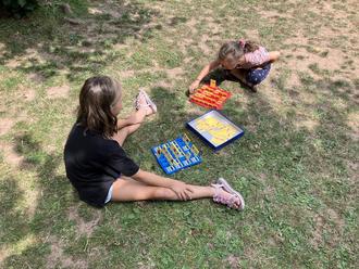 Der riesigen Auswahl unserer Spielesammlung sei Dank wurde uns immer etwas Neues geboten. Sogar Spiele die mit uns reden oder bei denen man schnell etwas bauen muss hatten wir zur Auswahl. Manche Spiele sind und bleiben aber Dauerbrenner. UNO Extreme gehört auf jeden Fall dazu. Wenn die Laune nach nichts stand, das ging immer! Manchmal brachten wir auch Spiele von zuhause mit. Das war dann besonders interessant, wenn niemand anderes das Spiel kannte. Doch das war gar nicht so leicht. Mit zunehmenden Temperaturen fiel es uns jedoch etwas schwer im Gebäude zu bleiben und uns auf die Brettspiele zu konzentrieren. Viel zu warm… und draußen lachte die Sonne. Kurzerhand nahmen wir sie mit, suchten uns ein schattiges Plätzchen und spielten draußen weiter. Alle Spiele, die nicht mit zu vielen Kleinteilen bestückt waren durften uns abwechselnd begleiten. Da durfte die ein oder anderen Freudenschreie auch etwas lauter ausfallen. Auf der Wiese spielt es sich halt doch am schönsten. Auch wenn es Karten- oder Brettspiele sind. Auch im zweiten Halbjahr hatten wir viel Spaß dabei. Danke an Frau Gelb!