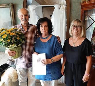 Unser Bild zeigt Elfriede und Alfred Tröster mit der Ersten Stadträtin Jutta Haas
