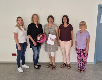 In der kleinen Feierstunde gesellten sich zum Gruppenbild v.l.n.r.: Peggy Schindler-Fichtel, Tina Mühlfeld, Jubilarin Doris Volk, Stefanie Ampferl, Jutta Haas