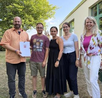 Schulleiter Bernd Siefert überreicht an Herrn Marc Denniger die Urkunde zur Verbeamtung auf Lebenszeit und spricht herzliche Glückwünsche aus. Der Personalrat, Alexandra Kern, Christine Moser und Andrea Maneth wünscht alles Gute und freut sich auf die kollegiale Zusammenarbeit.