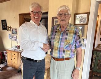 Unser Bild zeigt Stadtrat Dieter Schwöbel-Rein mit dem Jubilar.
