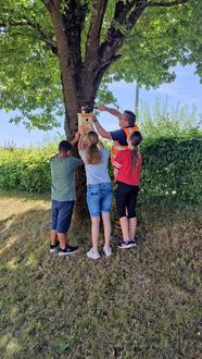 Am heutigen Montag, den 18. Juli 2022 konnte mit den beteiligten Schülern nun der erste Nistkasten an einer Eiche auf dem Gelände der Straßenmeisterei Beerfelden symbolisch aufgehängt werden.