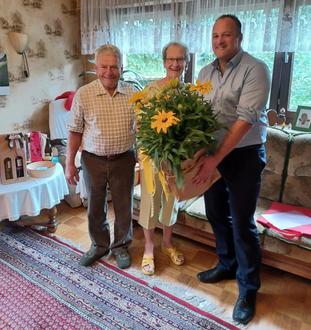 Am 25. August feierten die Eheleute Erika und Rudolf Schäfer das Fest der Goldenen Hochzeit. Unter den zahlreichen Gratulanten aus Familie, Nachbarschaft und Freunden war auch Bürgermeister Christian Kehrer, der dem Jubelpaar im Namen der Stadt Oberzent zu ihrem Ehrentag gratulierte.