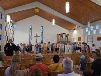 Wir feierten wir eine wirklich schöne Einschulungsfeier. Die Kinder der Klassen 2, 3 und 4 haben neben dem Schulsong, einem Einschulungsgedicht, dem AnlautRap und der Einschulungsgeschichte auch das Lied „Über den Wolken“ einstudiert, dass alle zum Mitsingen einlud. Nachdem die Paten ihren Patenkindern die traditionelle Einschulungsbrezel vom Bäcker Riesinger umhängten, wurde das Treppenfoto gemacht. Und auf dem Weg zum Gottesdienst wurden große Teile der Brezel bereits verspeist. Pfarrer Frohmuth hieß die gesamte Schulgemeinde herzlich willkommen und feierte einen lebendigen und bunten Gottesdienst mit uns, der den ein oder anderen leicht ins Schwitzen brachte. Gemeinsam liefen wir zurück zur Schule. Mit einem Lächeln im Gesicht verließen die neuen Erstklässler mit ihren Eltern den Schulhof und auf die Frage, ob sie denn morgen wiederkämen kam ein lautes und überzeugtes „Na klar!“