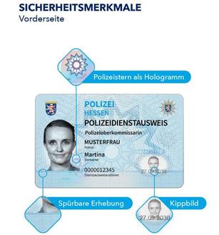 Auf der Internetseite der Polizei Hessen stehen sowohl der barrierefreie Flyer, als auch weiterführende Informationen zum neuen Dienstausweis zur Verfügung.