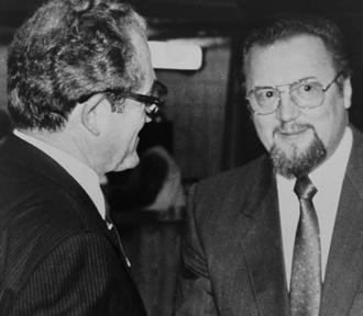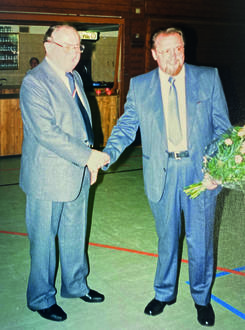 Vor der Wahl: Gespräch des damaligen Vorsitzenden der Gemeindevertretung Hermann Krieger (li) mit Willi Menges (re)