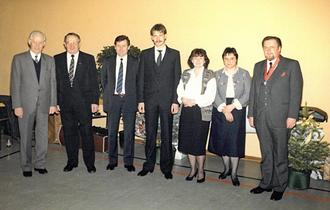Mitglieder der Verwaltung (vl): Willi Fink, Ehrenbürgermeister Hans Wieder, Albrecht Blutbacher, Armin Löffler, Doris Blutbacher, Ursula Foshag und Bürgermeister Willi Menges