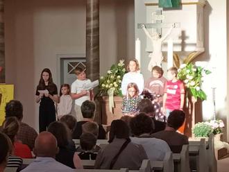 Ein gemeinsames Vaterunser, begleitet von guten Wünschen und dem Segen, rundeten den um die Geschichte vom kleinen und großen Riesen gestalteten Start ins neue Schuljahr ab.