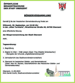 Gemäß § 8a der Hessischen Gemeindeordnung findet am
