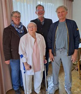 Mit der Jubilarin Olga Schwinn (vorne) freuen sich (vl): Gabriele Maurer, Pfarrer Roger Frohmuth, Stadtrat Klaus Seeh