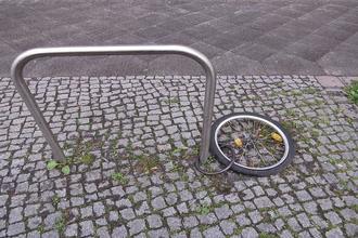 Sichern sie das Fahrrad nach Möglichkeit immer an einem festen Gegenstand. Das kann eine Straßenlaterne, oder ein Fahrradständer sein. Achten Sie darauf, dass Sie nach Möglichkeit immer das Hinterrad und den Rahmen an diesem Gegenstand befestigen.
