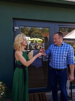 Zur Eröffnung des Friseursalons „Ricarda’s Salon“ am 16.09.2023 überreichte Bürgermeister Kehrer (Foto rechts) der Inhaberin Ricarda Eifert-Kaupa (Foto links) ein Präsent und wünschte ihr alles Gute und viel Erfolg.
