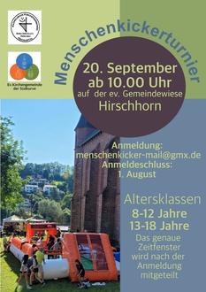 ab 10.00 Uhr Menschenkickerturnier an der Kirche Hirschhorn