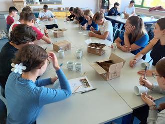 Am Freitag, den 15.09.2023 bemalte der Religionskurs der 10. Klassen von Herrn Siefert Tassen mit dem Schullogo für einen guten Zweck. Die Tassen wurden anschließend gebrannt und am nächsten Tag zum Rewe-Parkplatz in Beerfelden gebracht. Dort „verschenkte“ die muslimische Gemeinde Speisen gegen eine Spende, welche für die geplante Kletterwand der Oberzent-Schule genutzt wird. Die Tassen wurden für den dort servierten Tee verwendet. Die Tassen und die Speisen konnten von den Bürgern mit nach Hause genommen werden. In der Vergangenheit gab es schon mal Spendenaktionen für die geplante Kletterwand, z. B. hatte die ganze Schule an einem Spendenlauf teilgenommen, bei dem die Schüler in einer gewissen Zeit so viele Runden wie möglich gerannt sind, wodurch sie Geld gesammelt haben. Die Schüler waren von beiden Aktionen begeistert.