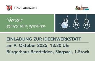 Alle Unternehmerinnen und Unternehmer sowie Bürgerinnen und Bürger laden wir herzlich zu unserer nächsten Ideenwerkstatt Oberzent ein!