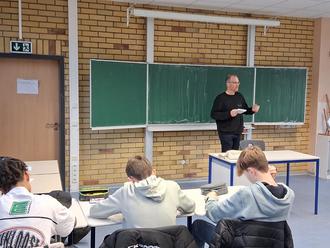 „Heute besuchte uns Bernhard Bergmann und erzählte uns von dem Kindertransport während der Zeit des Nationalsozialismus. Er las uns aus seinem Buch vor über ein Mädchen namens Rebecca. Die Geschichte war sehr berührend und wir haben alle mitgefühlt. Die Religionsstunde war sehr interessant und wir sind Herrn Bergmann sehr dankbar für den Vortrag.!“ Nico