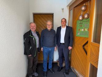 Bürgermeister Christian Kehrer (Foto rechts) und Ehrenbürgermeister Egon Scheuermann (Foto links) gratulierten gemeinsam Ehrenbürgermeister Manfred Heiss (Foto Mitte) zu seinem großen Geburtstag und blickten dabei dankbar auf dessen Engagement aus der aktiven Zeit als Bürgermeister der ehemaligen Gemeinde Sensbachtal zurück.