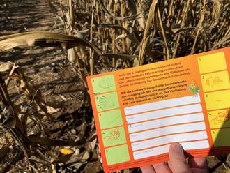 Was sich zu Beginn einfach anhörte, stellte sich als spannende Herausforderung für alle Sinne heraus. Denn im Maislabyrinth sieht bekanntlich alles gleich aus. Wer dann den eingezeichneten Wegen auf der Stempelkarte folgte und seine Sinne einsetzte, konnte das Ziel, alle Stempelkissen zu finden, erreichen.